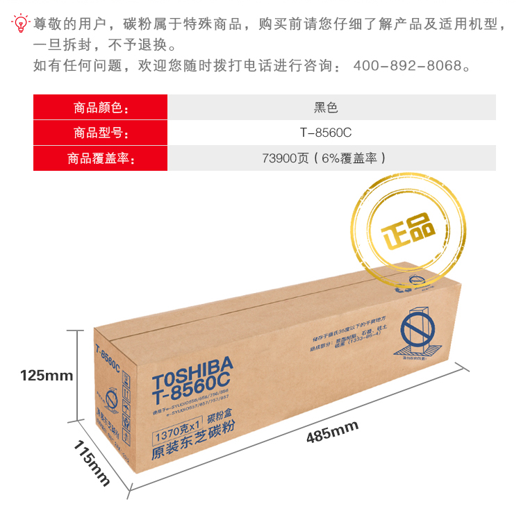 东芝(TOSHIBA)T-8560C原装碳粉墨粉(适用于e556/656/756/856/e557/657/757/857)