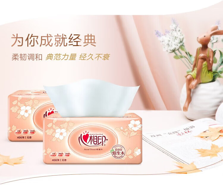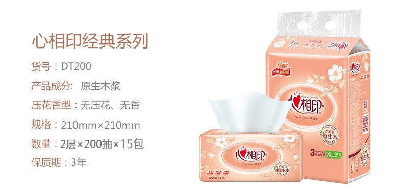 心相印抽纸2层抽纸原木纸巾抽纸200抽餐巾纸 大码宽幅 3包/提 DT200(颜色随机发货)