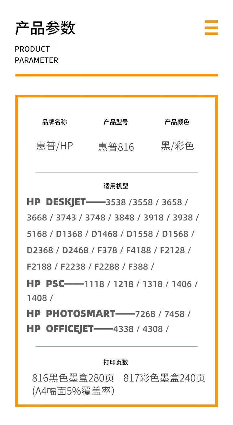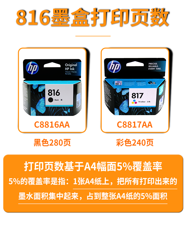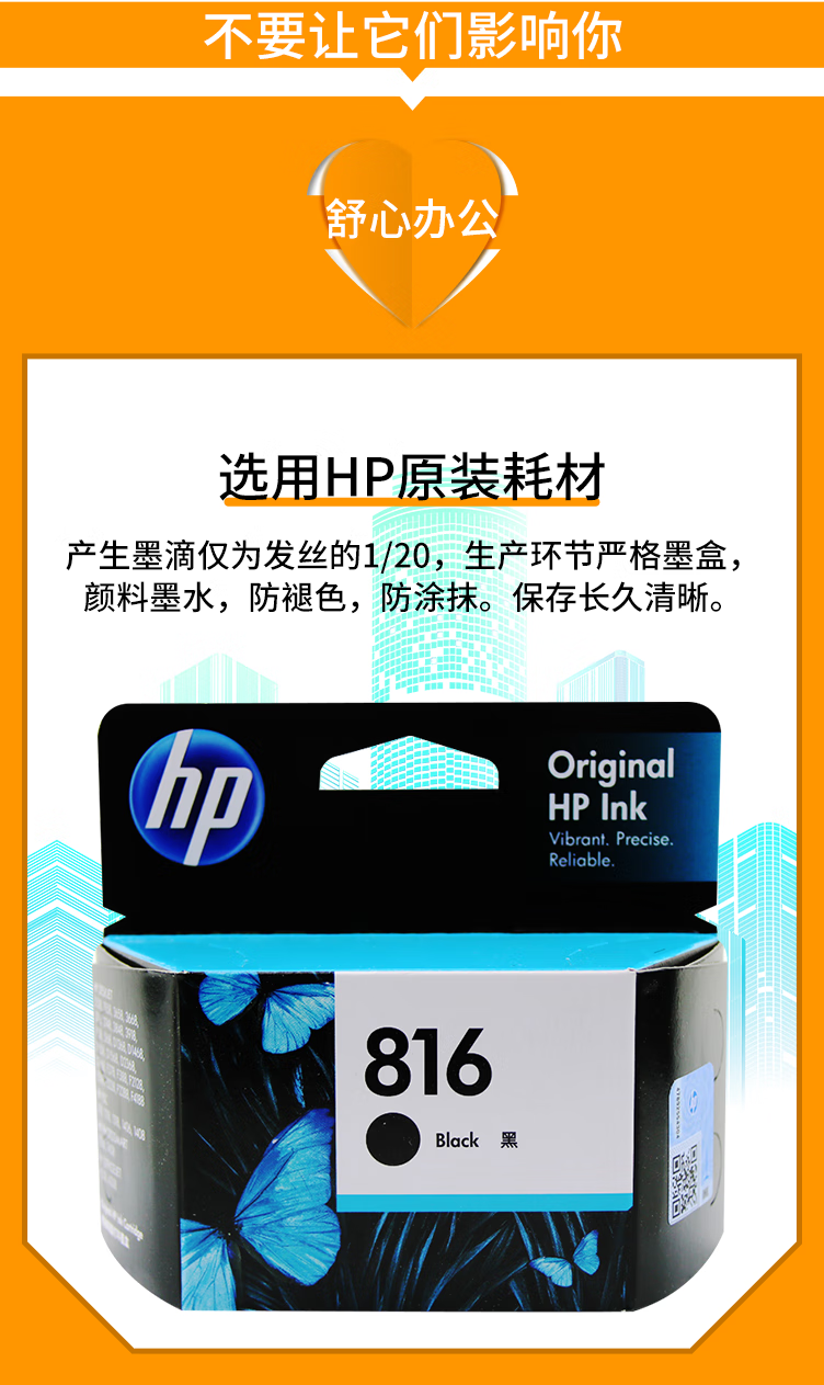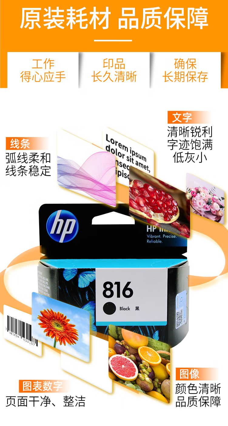 惠普(HP)816黑色墨盒 适用于hp F2288 1218 d2468 打印机等