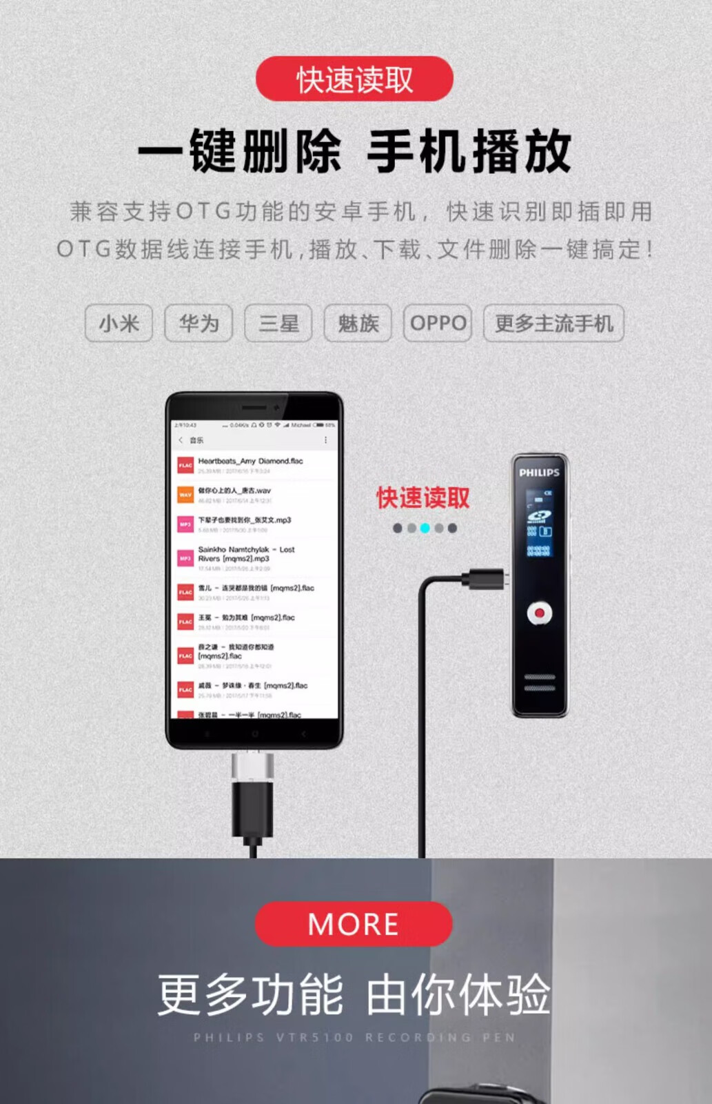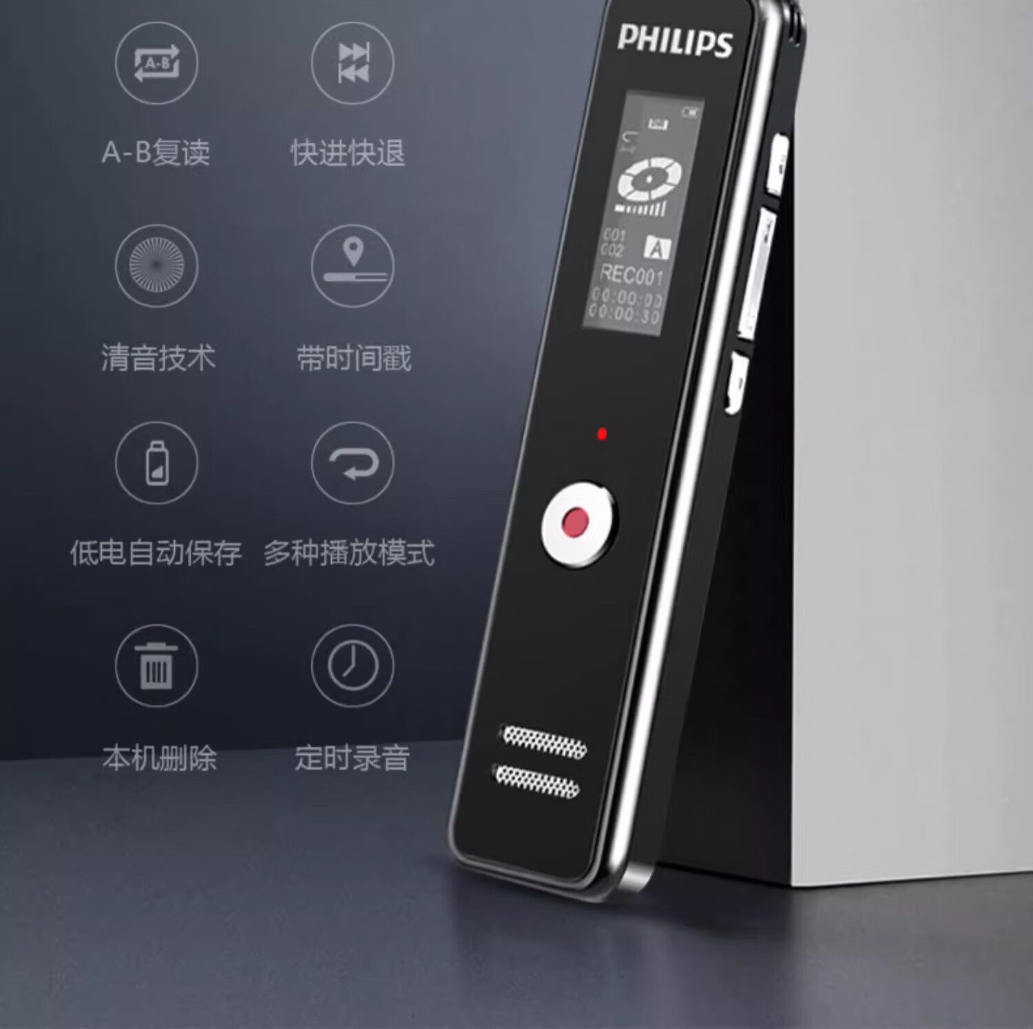 飞利浦录音笔VTR5100高清远距自动对焦mp3播放器(经典錆)