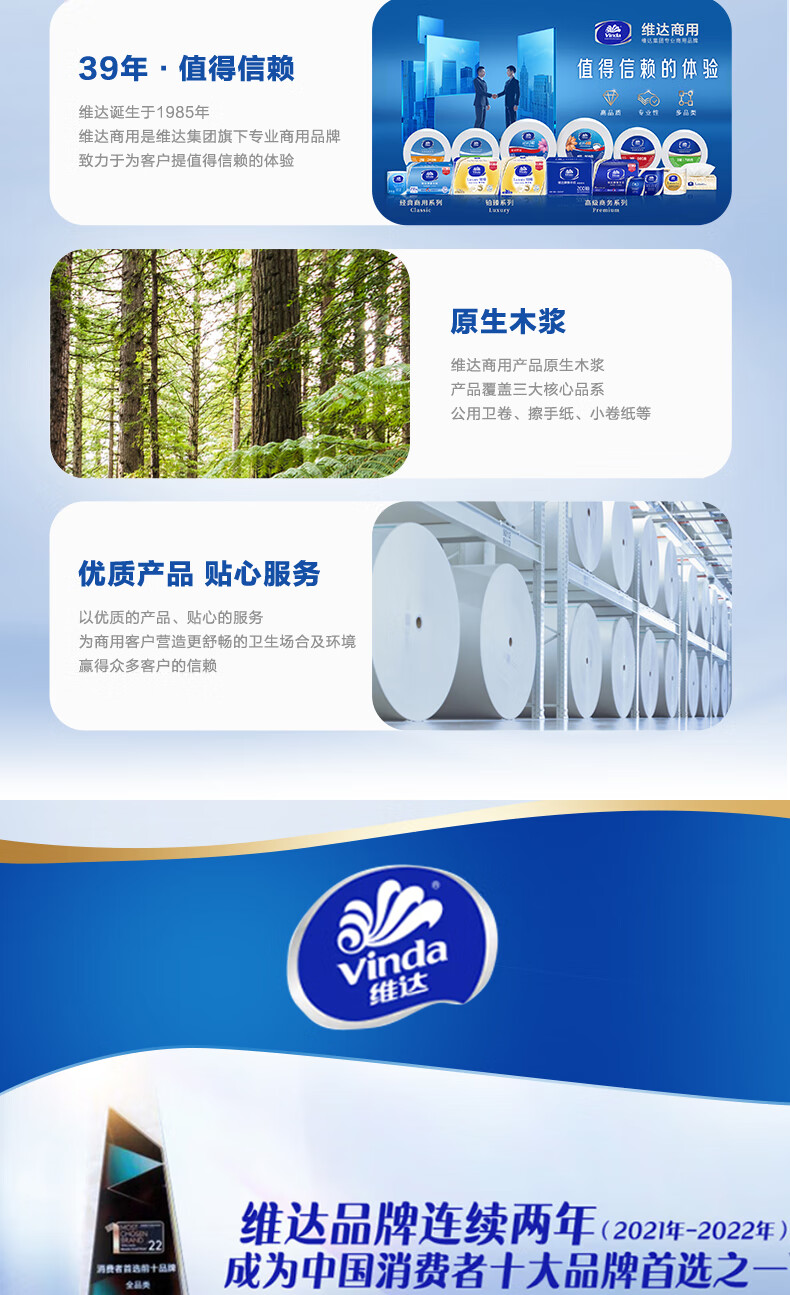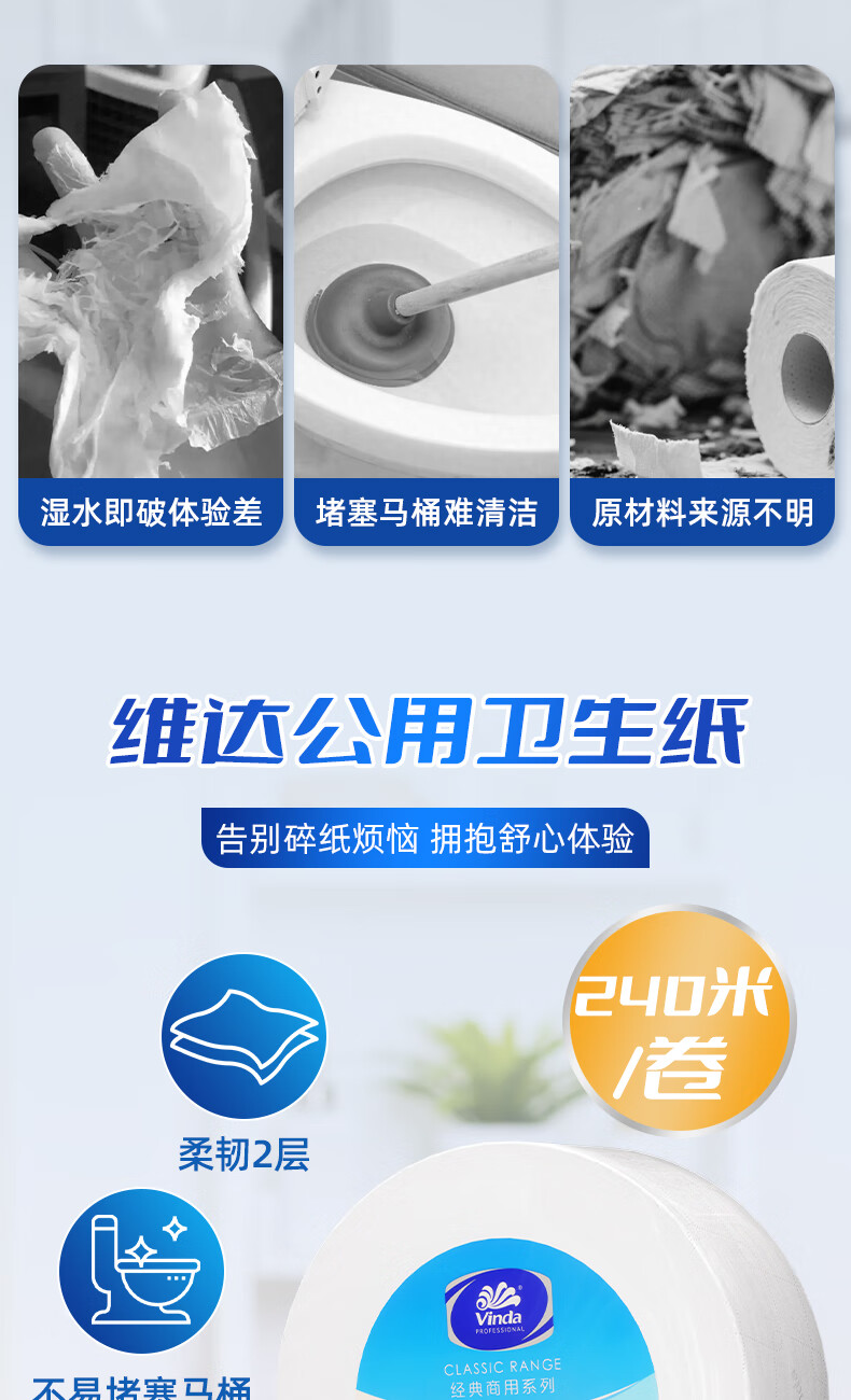 维达(Vinda) 卷纸vs4418大卷纸卫生纸大盘纸公用240米/卷双层商用手纸厕纸 12卷/箱