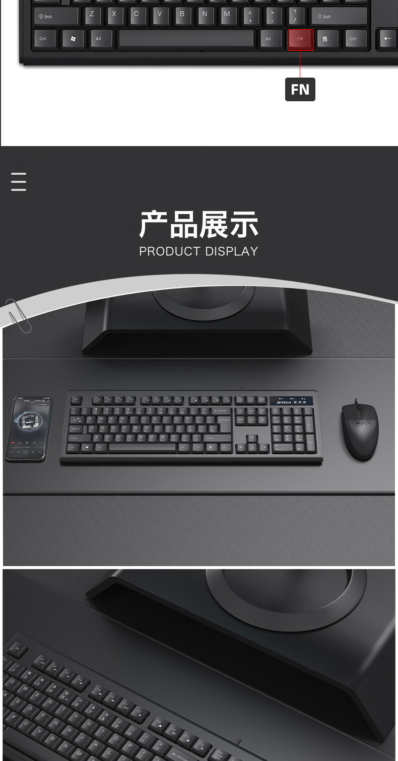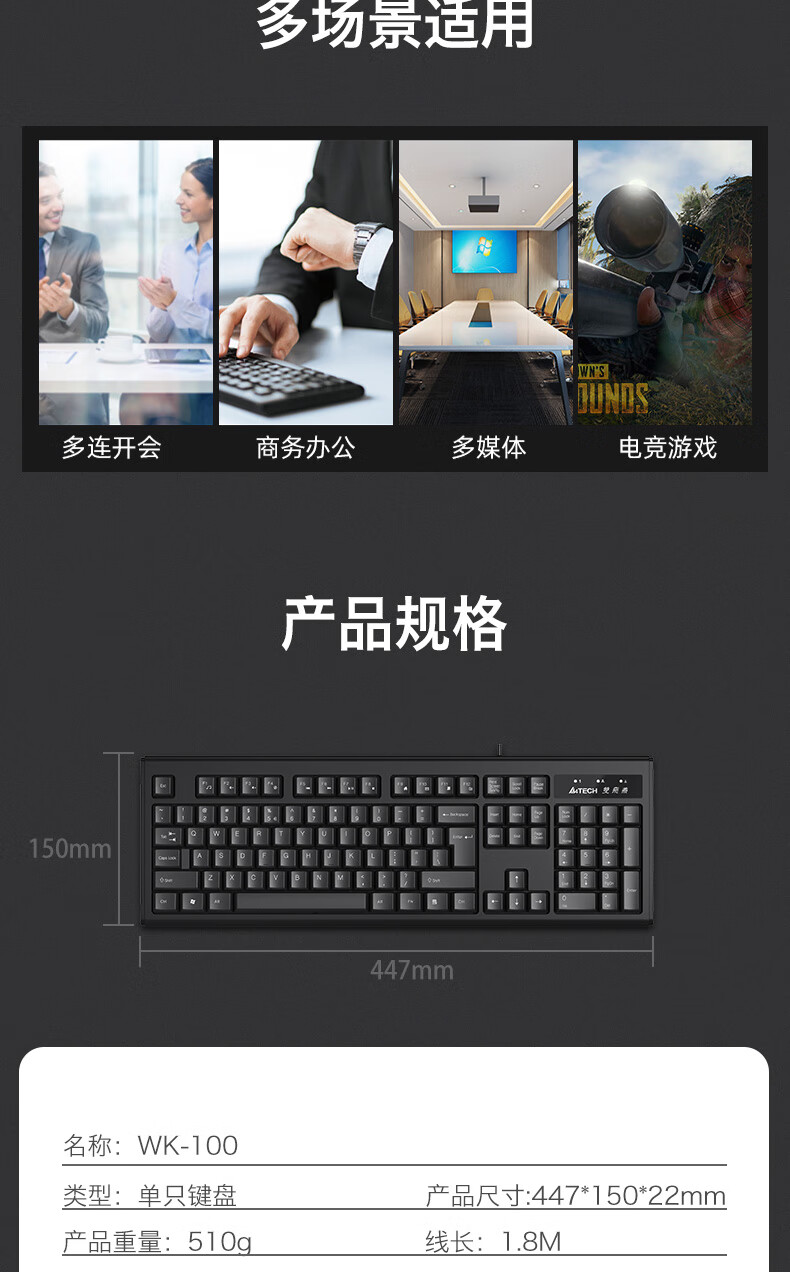 双飞燕(A4TECH) WK-100 键盘 有线键盘 办公键盘 防水 104键 黑色