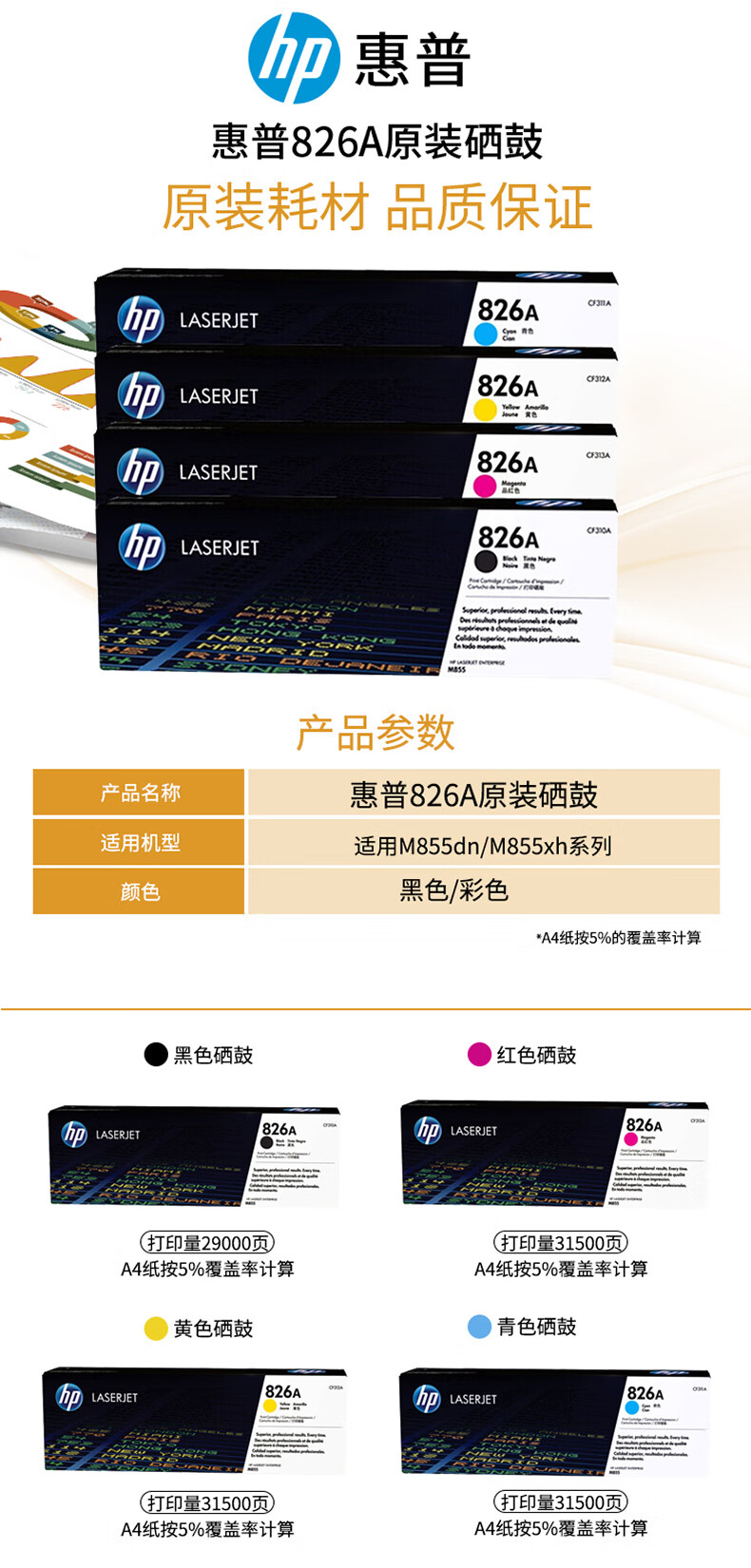 惠普(HP)CF312A(826A)黄色原装硒鼓 (适用于:M855系列)