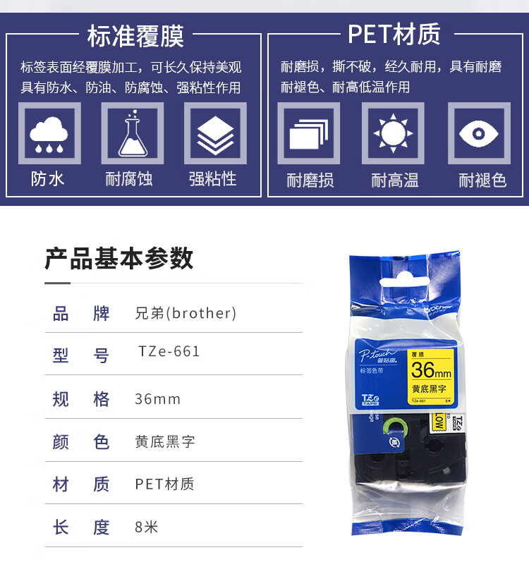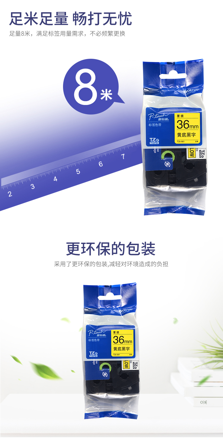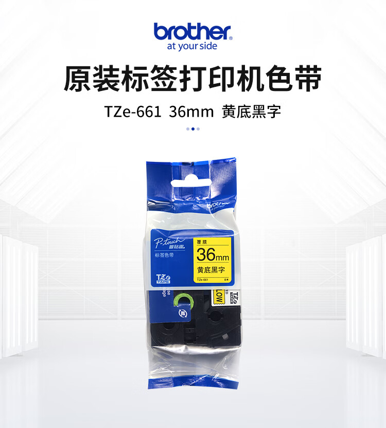 兄弟(brother) TZe-661 36mm黄底黑字标签色带(适用9500/9700/9800/3600)