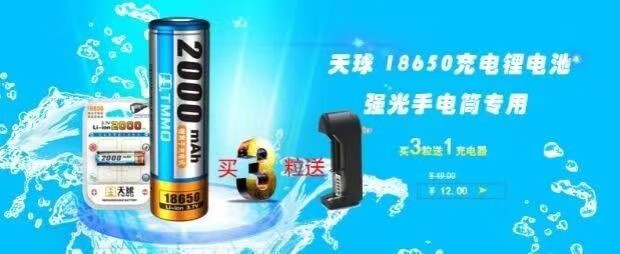天球电池 18650充电锂电池3200毫安 18650 4节电池+充电器