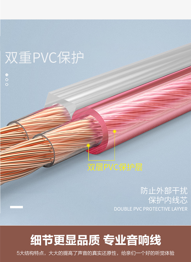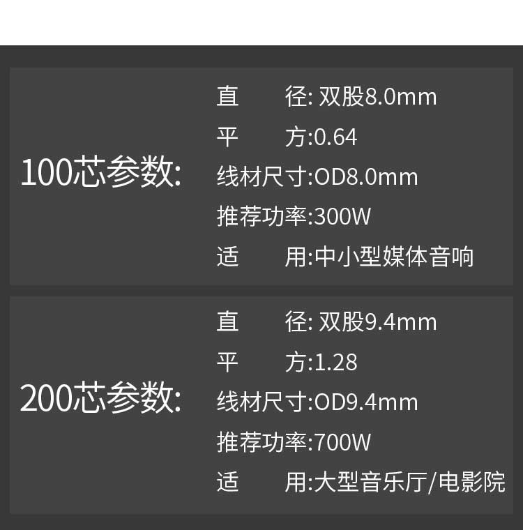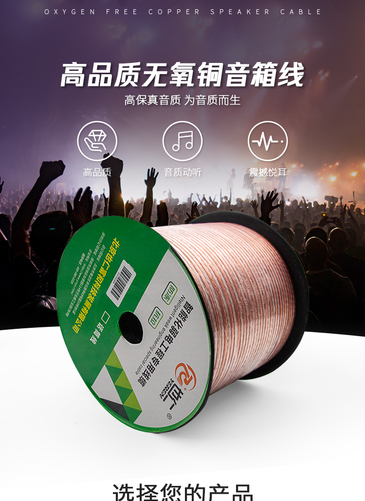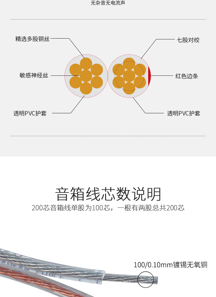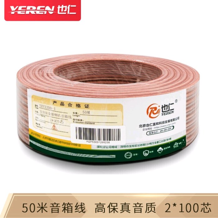 也仁 发烧级音响线 工程级音箱线 喇叭线 高保真专业HIFI音频线 纯铜2*100芯50米