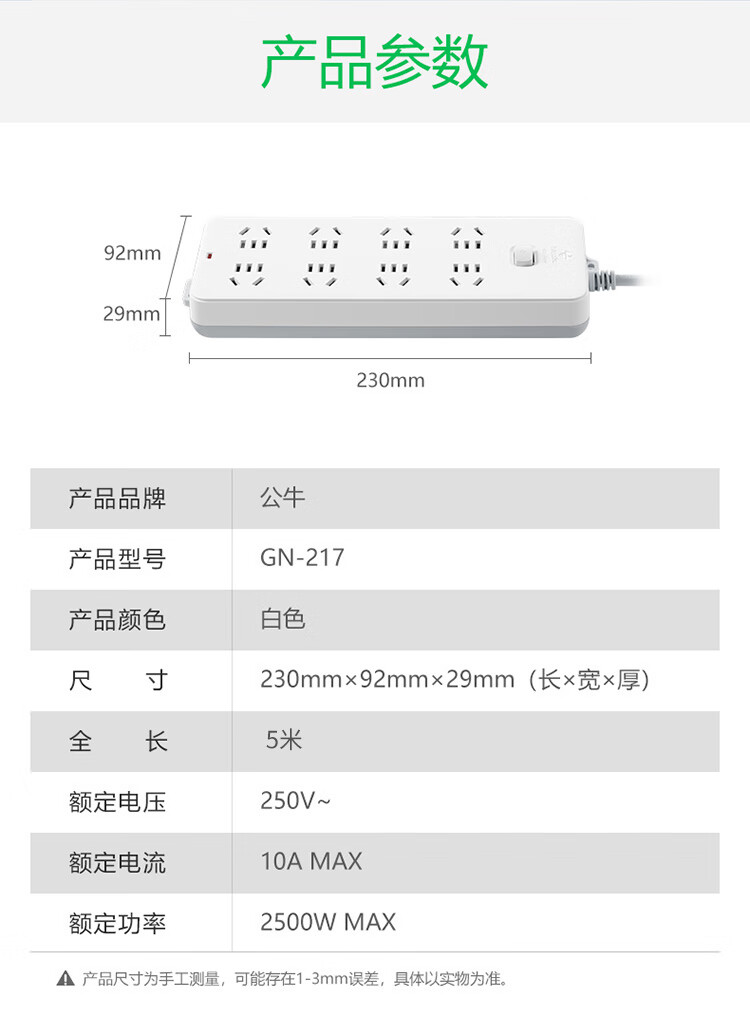 公牛(BULL)GN-217 新国标插座/插线板/插排/排插/接线板/拖线板 8位总控全长5米超功率保护