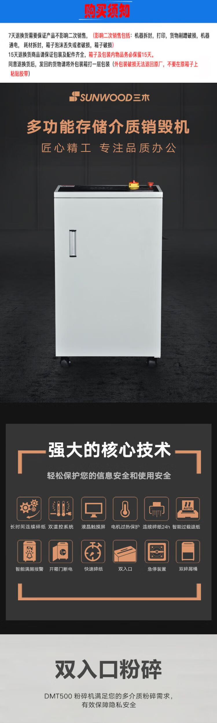 三木 DMT500 涉密销毁碎纸机 3级保密(单次80张 24小时 100L 可碎光盘,纸,针,硬盘,U盘)