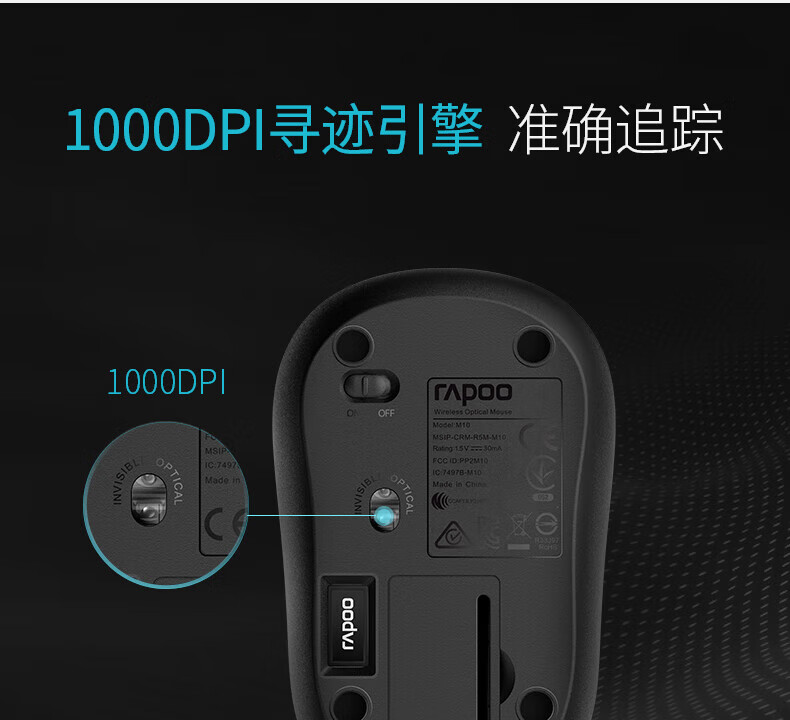 雷柏 M10 PLUS 无线光学鼠标 便携电脑鼠标 黑色