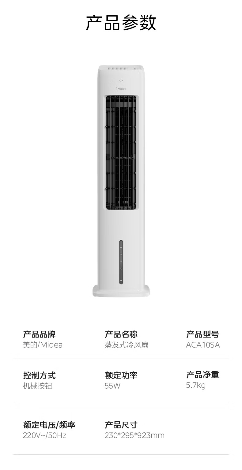 美的(Midea)ACA10UB 蒸发式空调扇轻音低噪