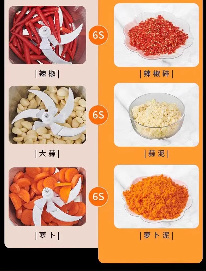 打蛋,碎菜,绞酱料,绞肉馅,和面,灌肠,绞果泥等