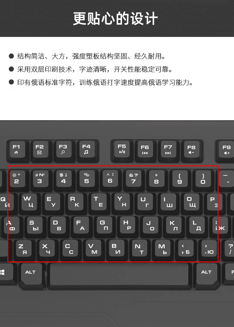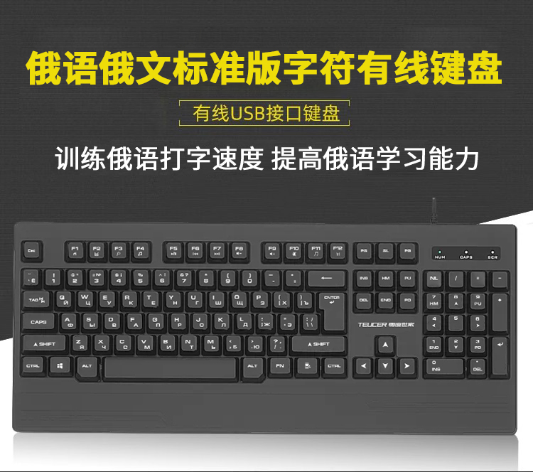 零度世家 俄文字符键盘 电脑台式机USB接口有线 标准版 俄语练习打字键盘
