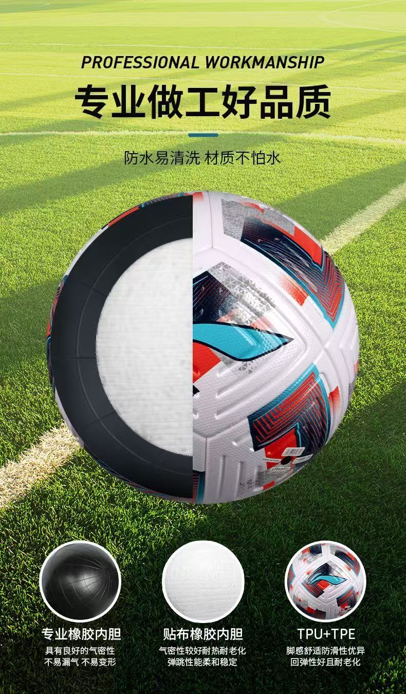 李宁足球5号成人儿童比赛训练用球 耐磨足球 防滑耐磨 室内外通用