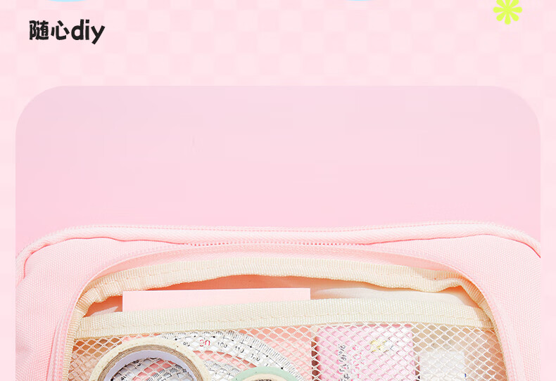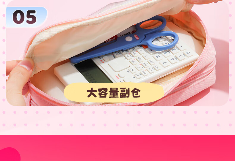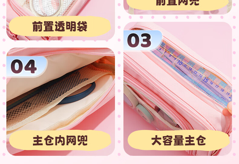 拉布布笔袋 APB932HR-A文具小学生笔袋 三拉链大容量文具盒铅笔盒痛包高颜值男女孩笔袋 粉色