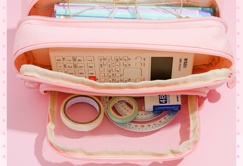 拉布布笔袋 晨光 APB932HR-A文具小学生笔袋 三拉链大容量文具盒铅笔盒痛包高颜值男女孩笔袋 粉色