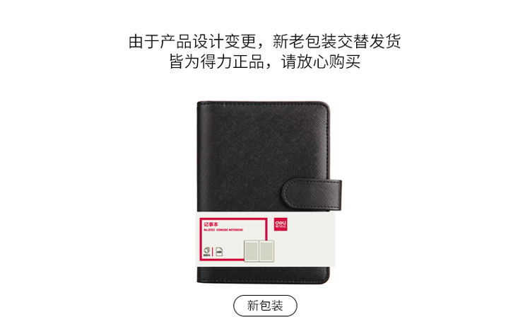 得力 3152皮面本 7寸活页记事本 48K笔记本 黑色 165*105mm 100张/本