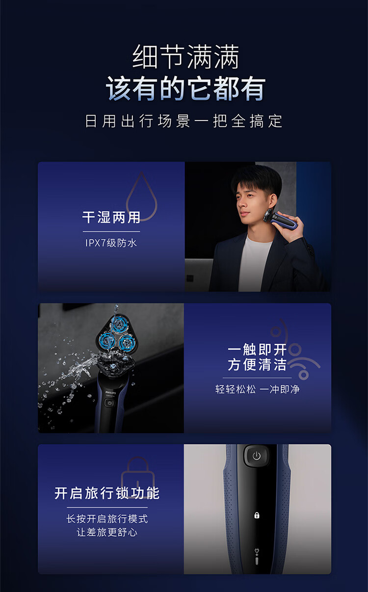 飞利浦(PHILIPS)S5277 电动剃须刀 经典5系Pro 清爽净剃AI智能刮胡刀