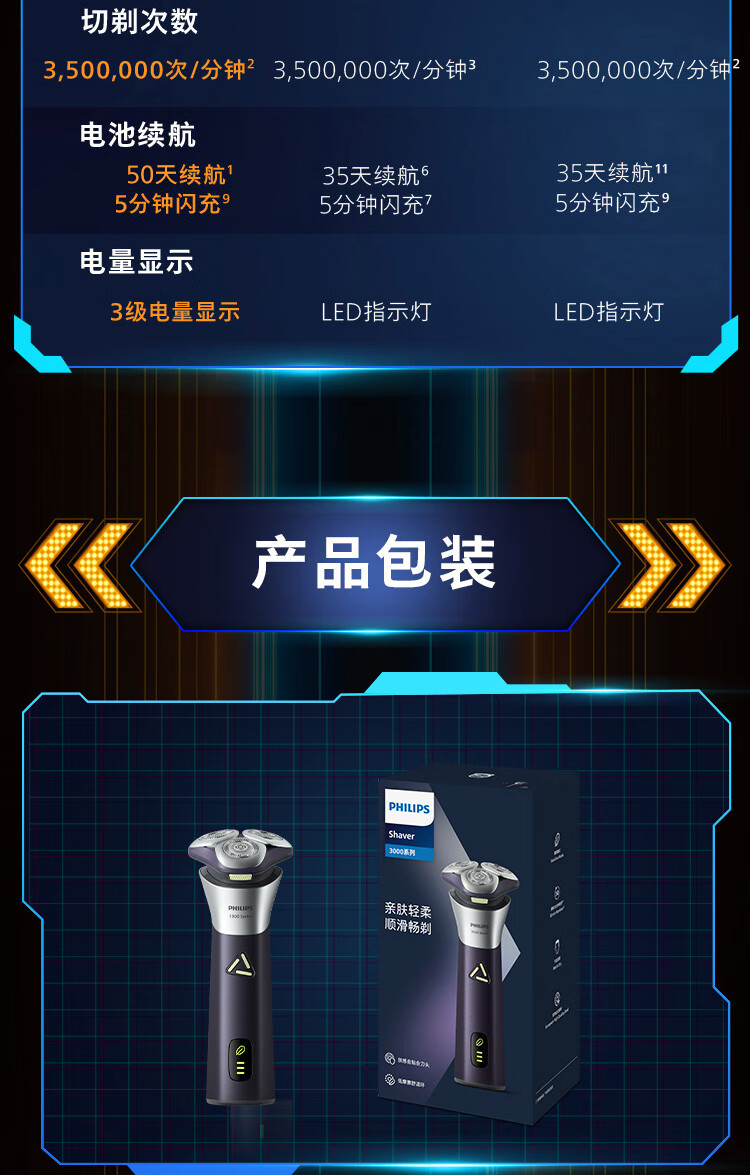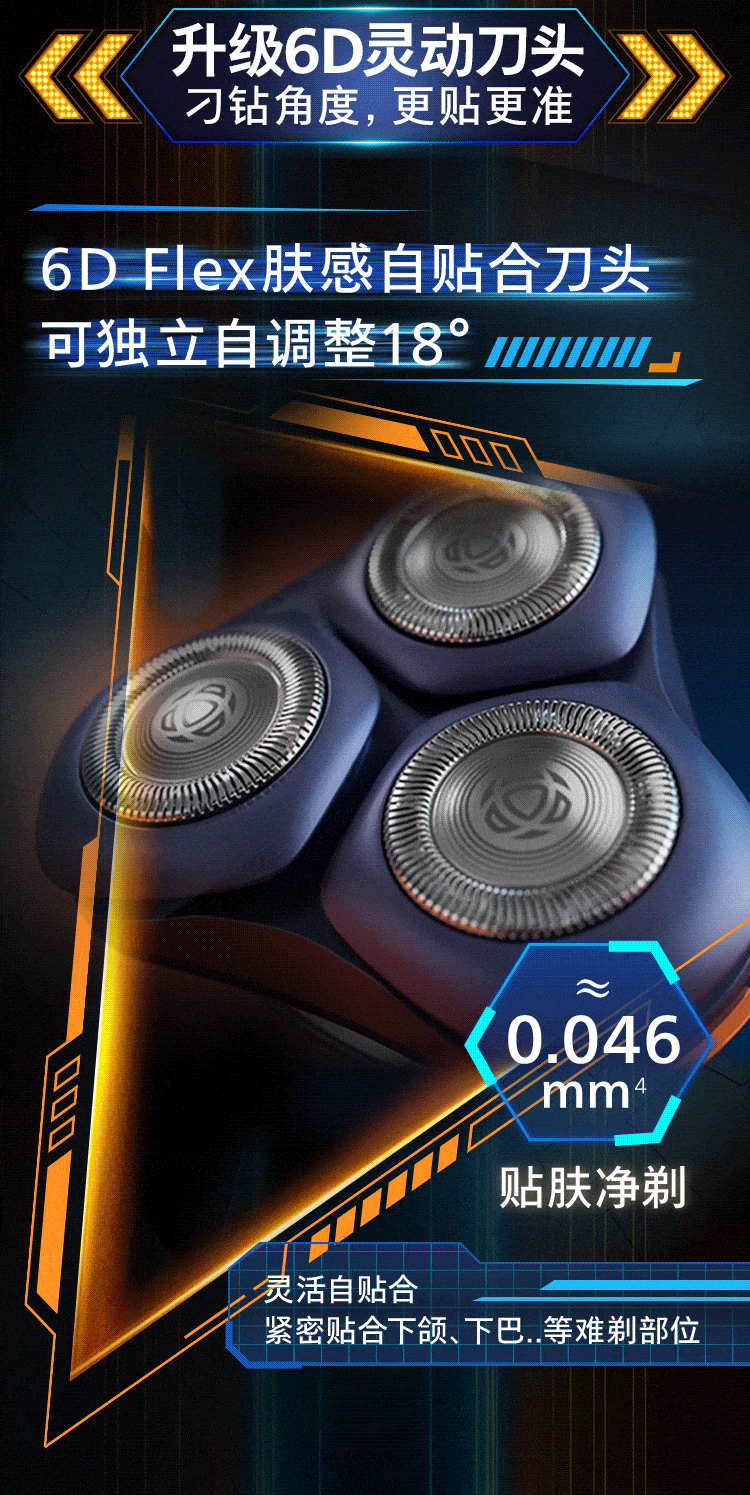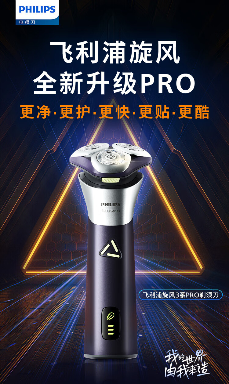 飞利浦(PHILIPS)S3885 电动剃须刀 旋风3系PRO刮胡刀 风驰切剃6D浮动刀头