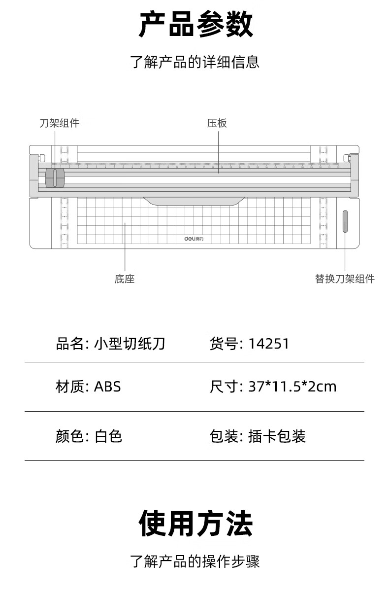 得力(deli) 14251 小型裁纸刀裁纸器 海蓝色 370*110mm 1个装