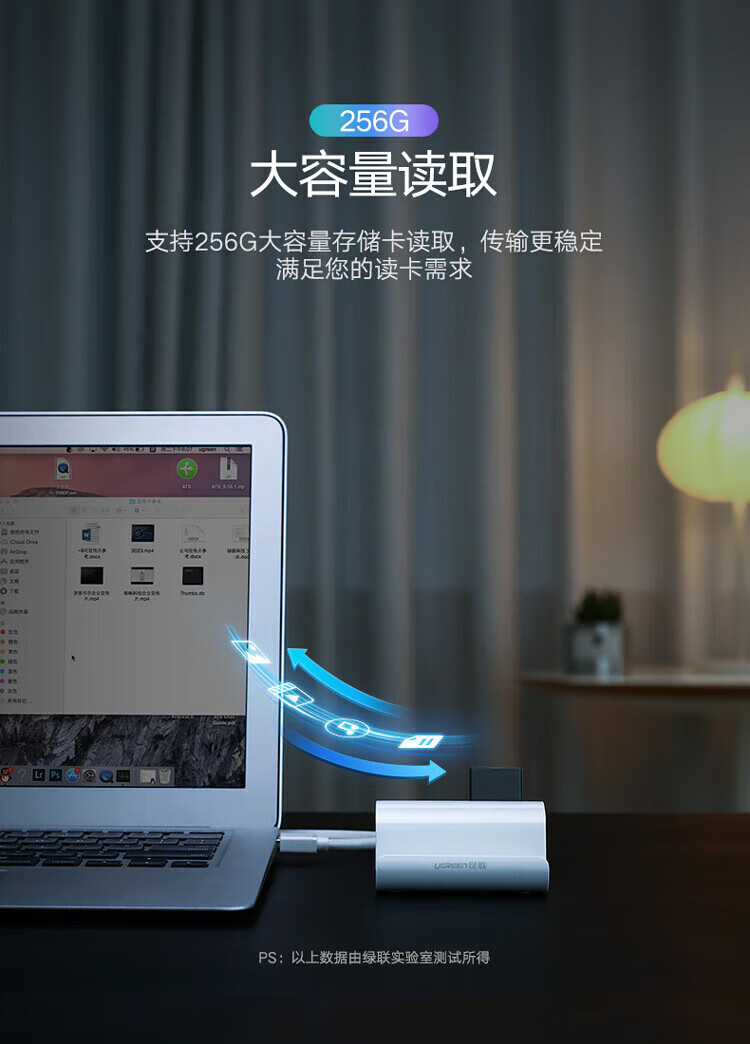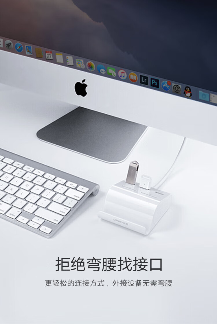 绿联 30344 USB3.0分线器 高速3口拓展坞 HUB集线器 带SD/TF读卡器功能 1米 带支架 单位 个