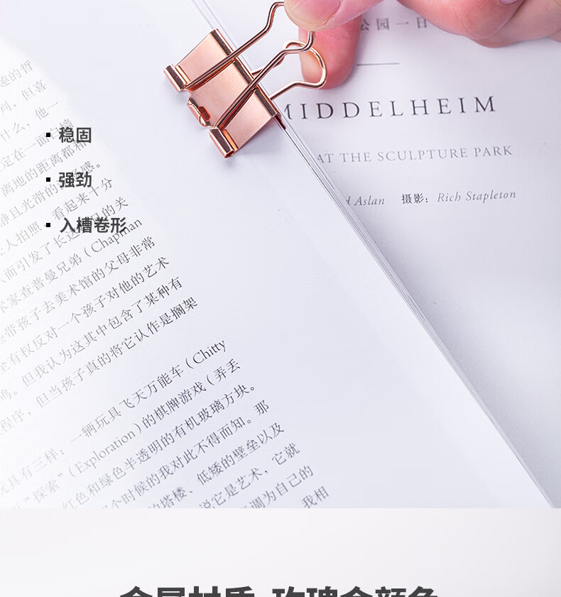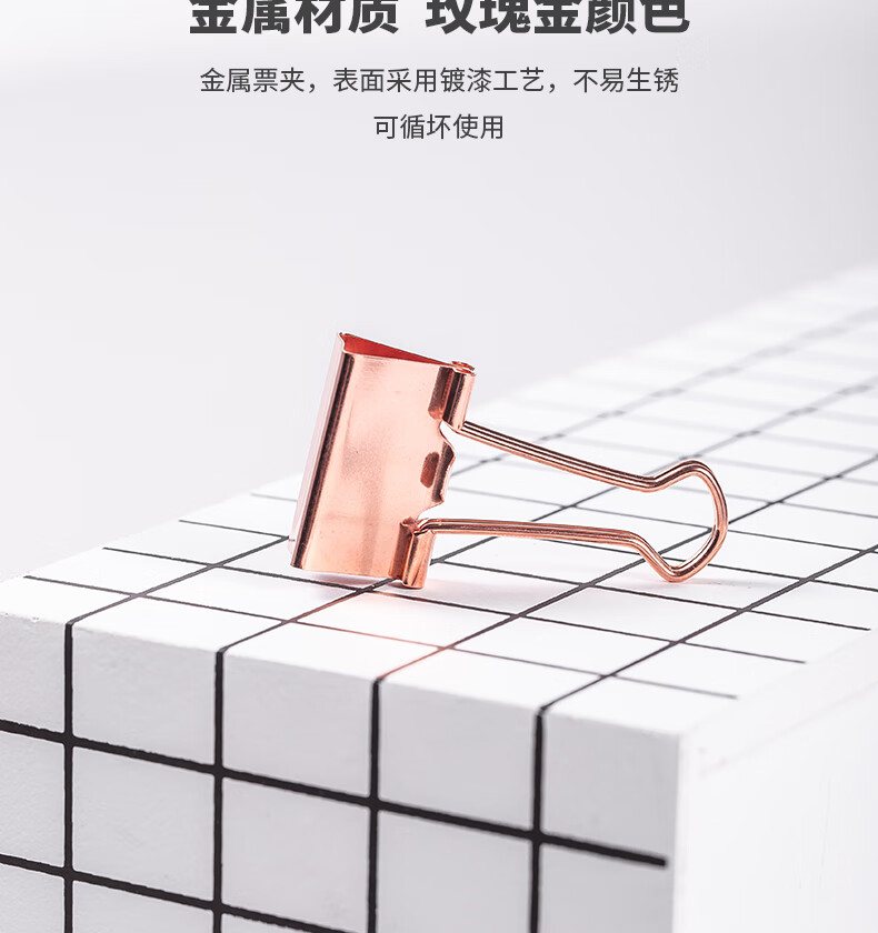 得力 78200 长尾票夹 燕尾夹 玫瑰金 18*36mm 25只/盒
