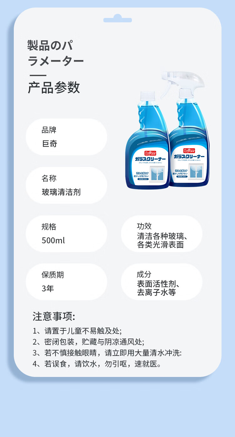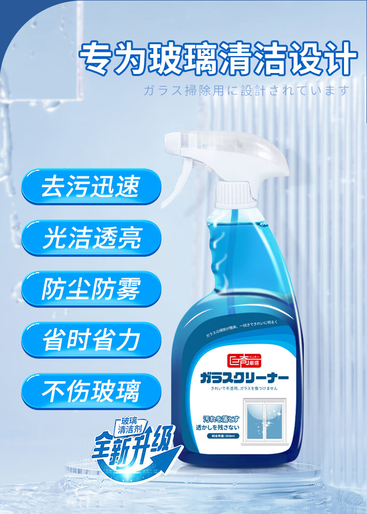 巨奇 玻璃水清洁剂 家用擦玻璃浴室去水垢油膜神器 500ml*2瓶/组