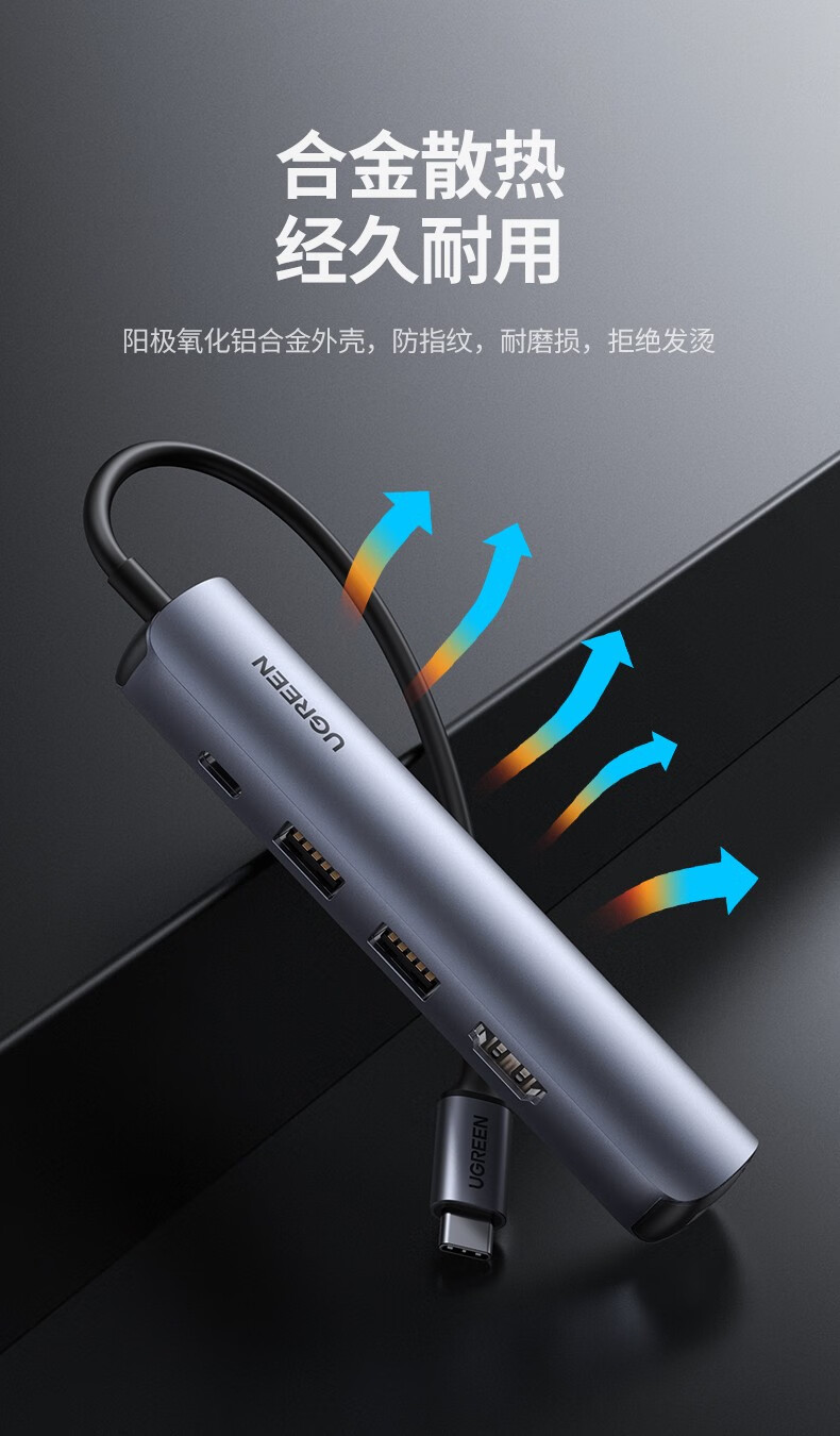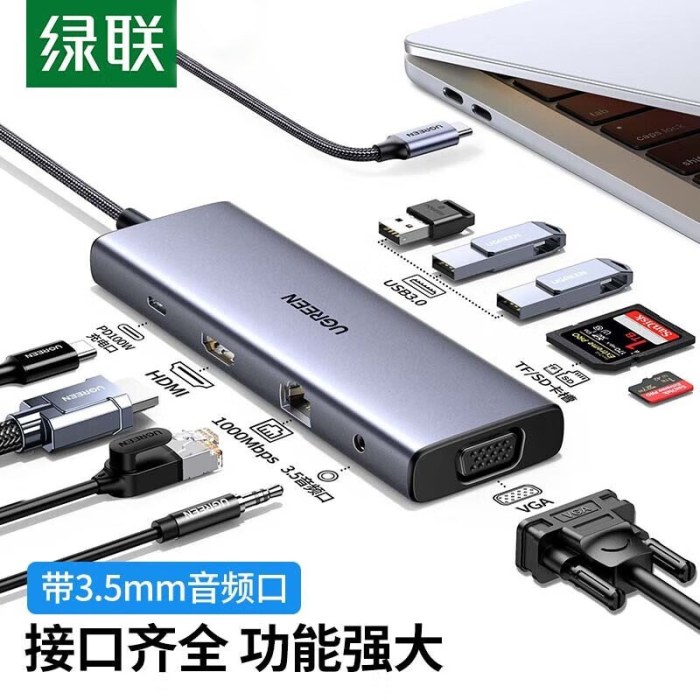 绿联 15601 Type-C扩展坞 千兆有线网卡网口 10合1 HDMI+VGA+网卡+音频