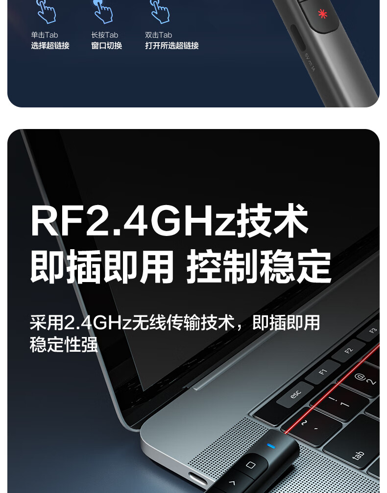 得力(deli)MA120 红光激光笔 翻页笔教师用演讲笔 PPT翻页笔 投影笔激光翻页笔极速快充 无线演示 黑色