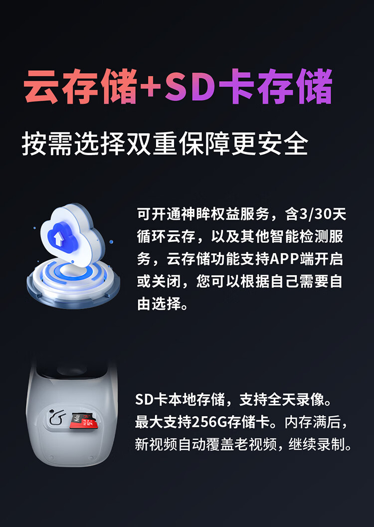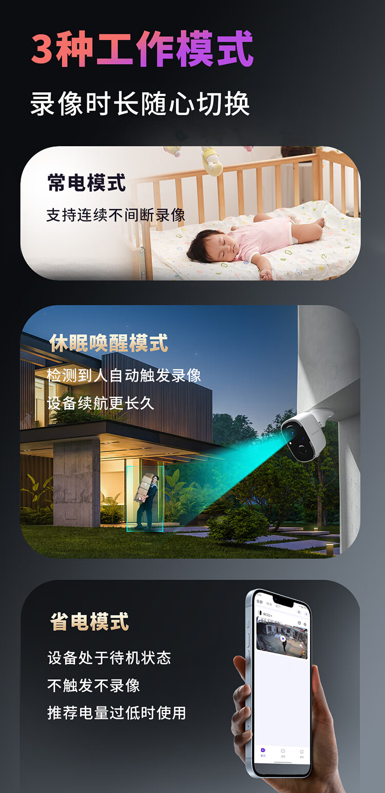 神眸 BC4 免插电移动摄像头 无线监控 2.5K极清 128G存储卡