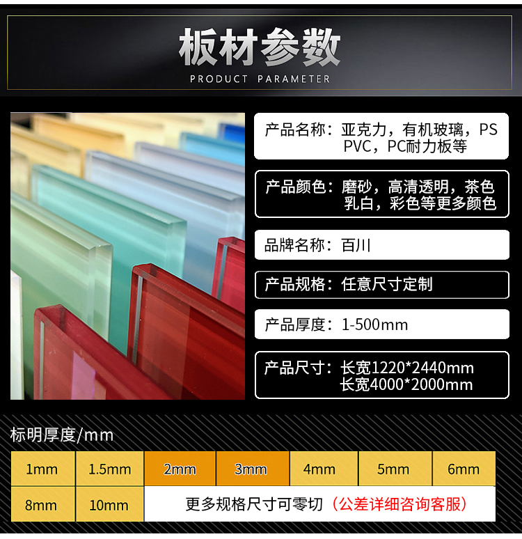 高透明亚克力板 有机玻璃隔板 1.2*2.4m 厚度2mm