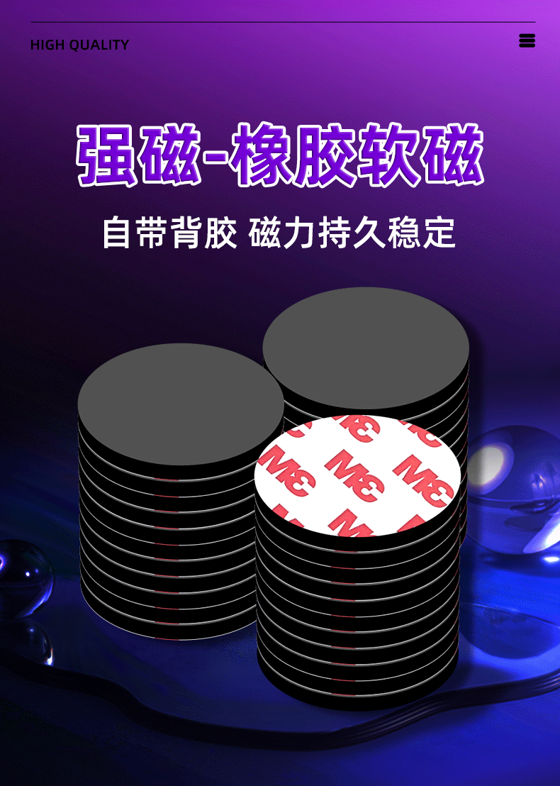 橡胶软磁片 圆形 强磁背胶自粘磁贴20*2mm 100片/组