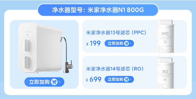 小米 MR872 N1 800G 净水器 大通量 厨房台下家用 5年RO反渗透