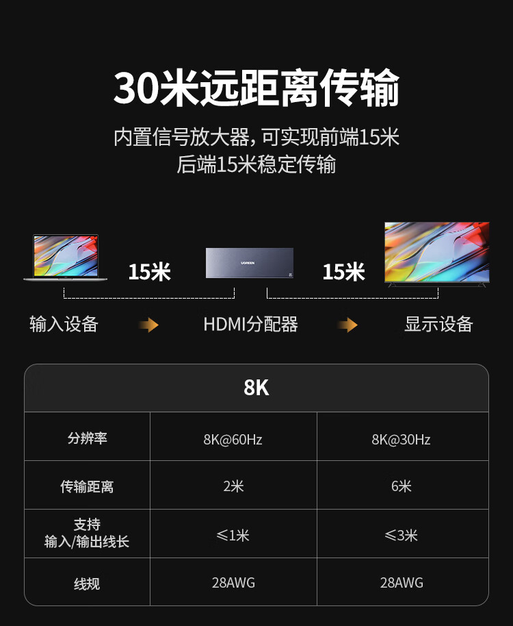 绿联 25860 HDMI分配器一进八出 8K@60Hz
