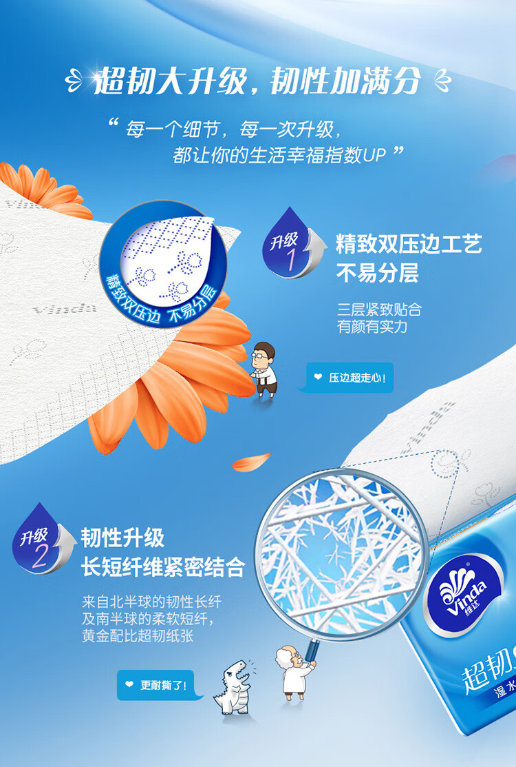 维达(Vinda) 维达卷纸超韧3层无芯卫生纸巾150g厕纸手纸家庭装卷筒纸v4492 12卷/提