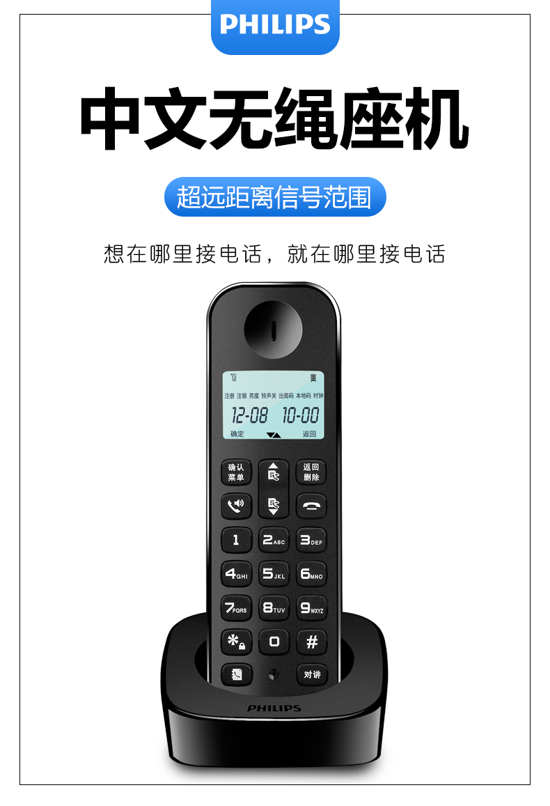 飞利浦 DCTG160 无绳电话机 座机家用 无线办公室 商务子母机单机