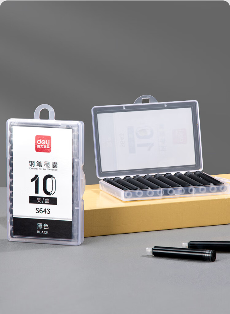 得力 S643 黑色 钢笔墨囊 学生钢笔墨水笔墨囊 可替换 10支/盒 单位 盒