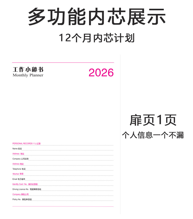 效率手册日程本 2026年工作小秘书 A4日历笔记本记事月计划本210*290mm 10本/组(颜色随机)