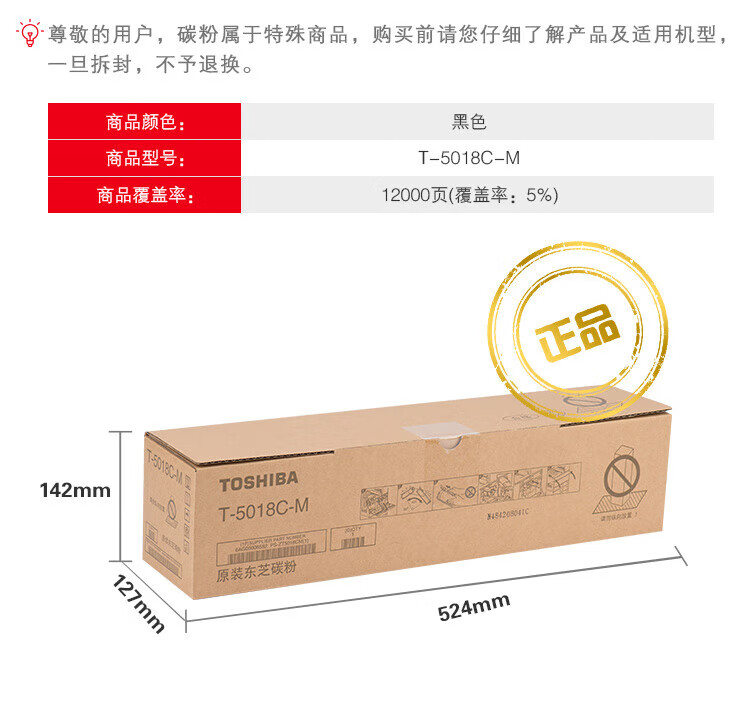 东芝T-5018C原装粉盒 适用于2518/2618/3018/3518A 黑色低容5018CM(205g 12000页)