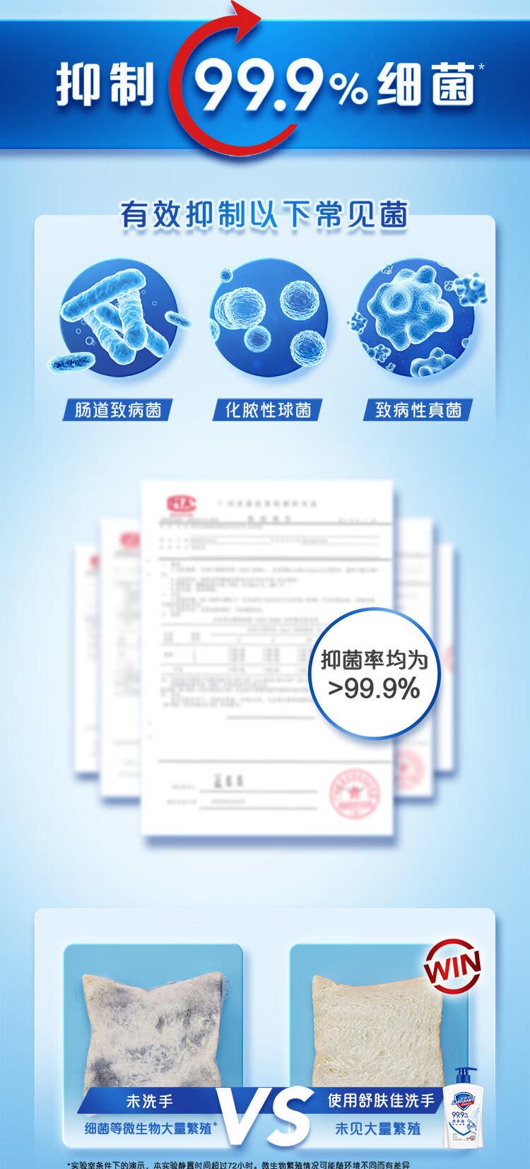 舒肤佳 纯白清香 抑菌洗手液 健康抑菌99.9% 温和 新旧包装随机 450g/瓶