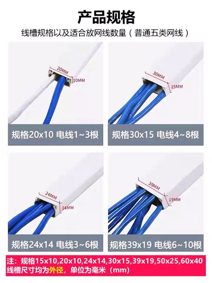 PVC 线槽盒80*40MM国标PVC线槽阻燃环保方线槽明装家用