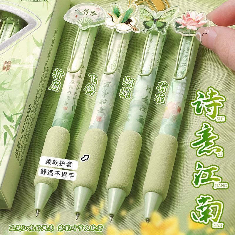 中性笔 诗意江南 海面软握按动中性笔 速干0.5mm 黑色芯 4支/盒