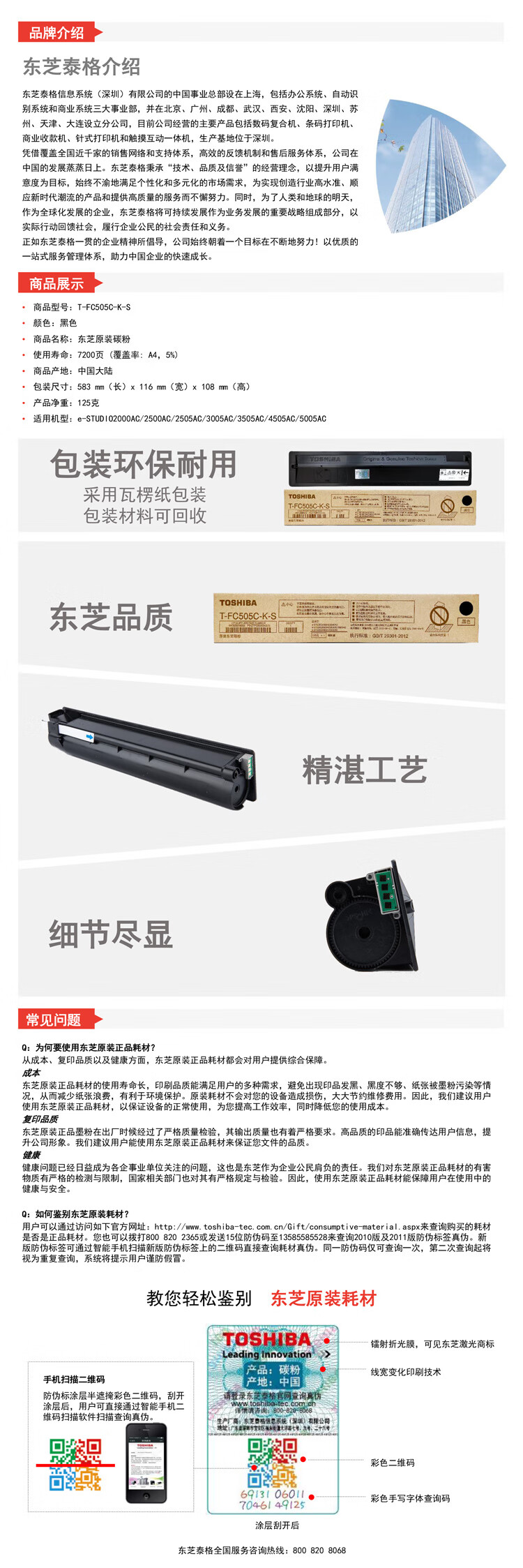 东芝(TOSHIBA)T-FC505C-K-S 黑色粉盒(低容) 适用于:东芝2000AC/2500AC/2505AC/3005AC/3505AC/4505AC/5005AC(计价单位:支)