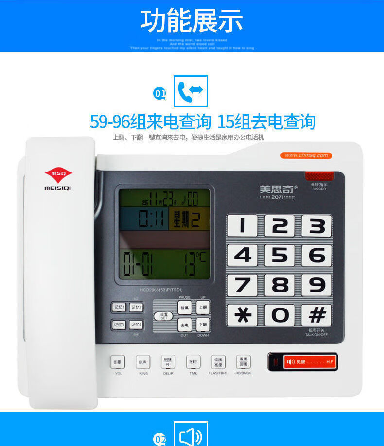 美思奇 MSQ 2071 老人电话机座机 电信有绳办公 座式 来电报号 白色